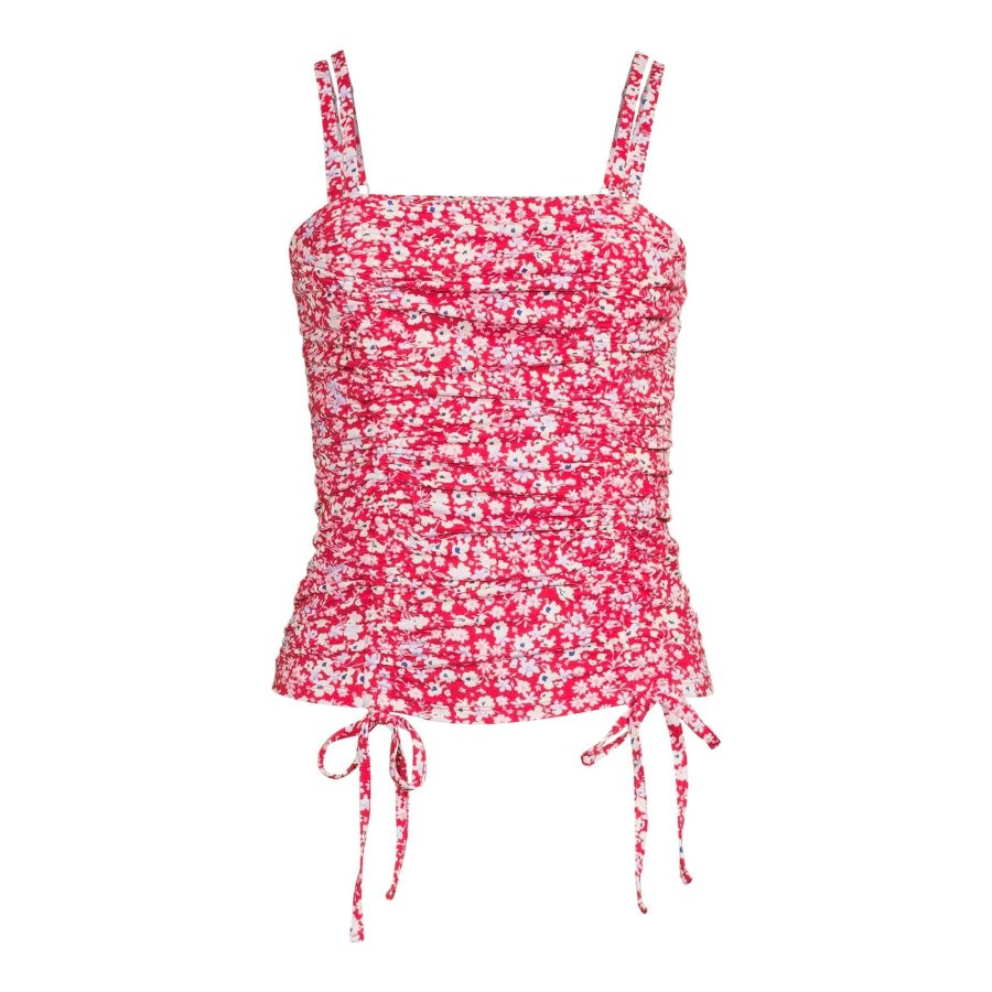 Red Combo Double Ruched Tank Top
