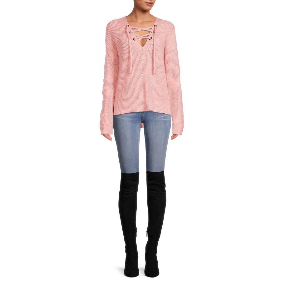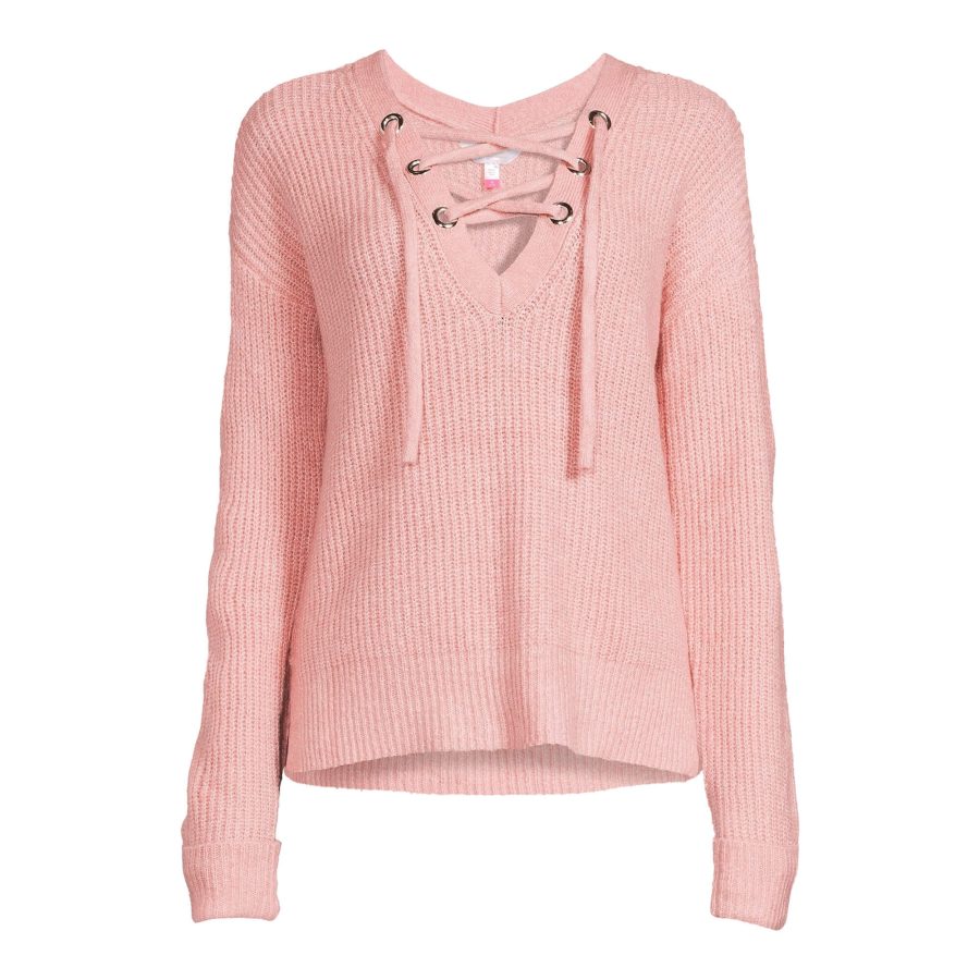 Tags: Age Group_Juniors, Brand_No Boundaries, Category_Tops, Collection-Girls, Color_Pinks, Gender_Female, Price_$10 - $15, Size_2XL, Size_3XL, Size_L, Size_M, Size_S, Size_XL, Size_XS, Sleeve_Long, Style_ Lace Up Sweater