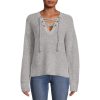 - Features: Lace-up front; dropped shoulders; turn back cuffs; soft yarn fabric